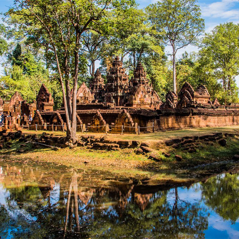 After lunch, drive to Banteay Srei, "Citadel of Women", which houses some of the finest examples of classical Khmer art. Then explore Banteay Samre.