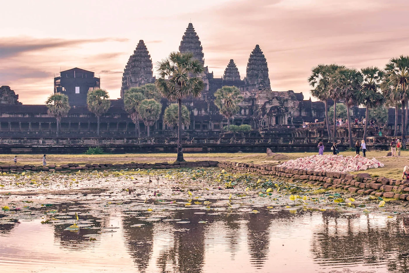 Then, in-depth visit of Angkor Wat, a masterpiece of Khmer art. It is the most famous and most imposing of all the monuments of Angkor, whose five towers, a golden pink, have become the emblem of all the successive regimes of Cambodia. At dusk, the temple briefly takes on an orange color depending on the inclination of the rays of the setting sun.