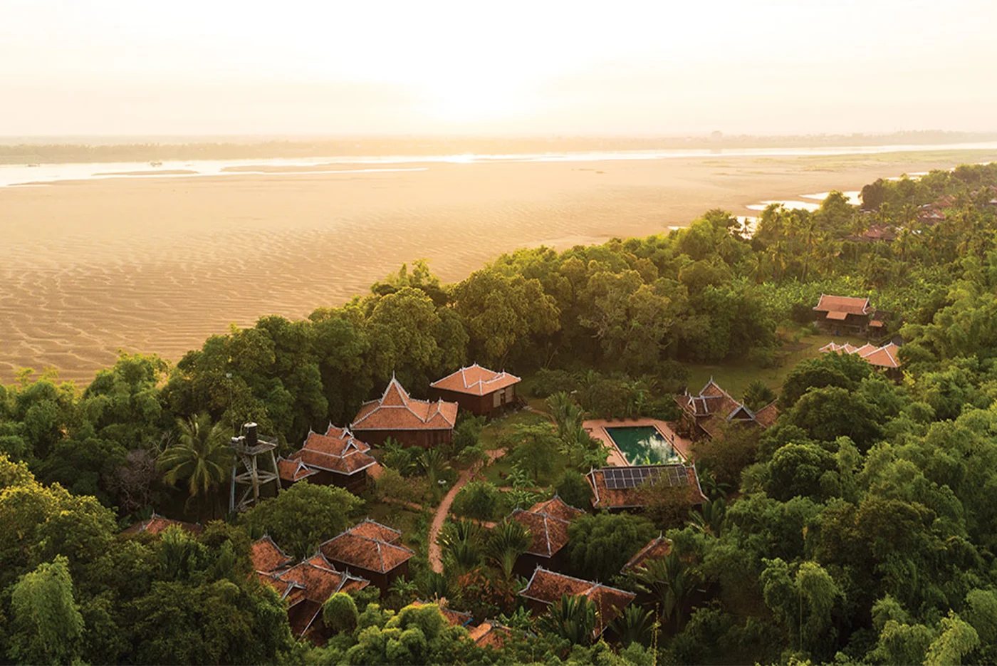 In the middle of the Mekong, surrounded by fine sandy beaches, the island of Koh Trong is another Cambodia far from the bad modernism that now affects the land of smiles. Installation. Dinner and Night in Koh Trong.