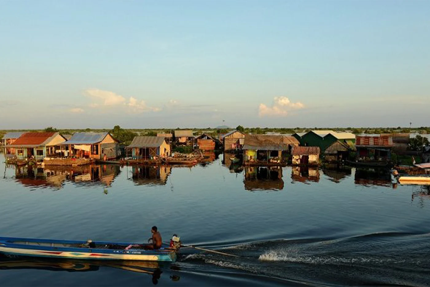 Visit the floating village of Kampong Khleang. Your excursion begins aboard a traditional raft that navigates the Tonle Sap Lake to reach the village of Kampong Khleang. It floats on the water, the stilts that serve as a base for the houses measure between six and seven meters and allow the dwellings to remain largely out of reach of the waves during the rainy season. In the dry season, these poles are completely visible and impress by their size. Lunch in a local restaurant.