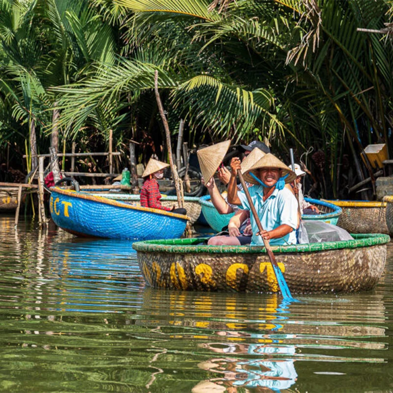 Experience a half-day tour of Cam Thanh Village, where you can try traditional fishing techniques and enjoy a bamboo basket boat ride. Afterward, fly to Hanoi for check-in and leisure time.