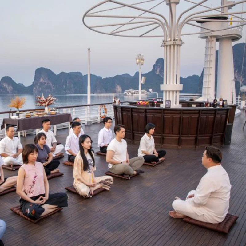 Travel to Halong Bay for an afternoon cruise. Enjoy sightseeing, kayaking, or swimming, followed by a cooking class and an elegant dinner on board. In the evening, relax with various onboard activities.