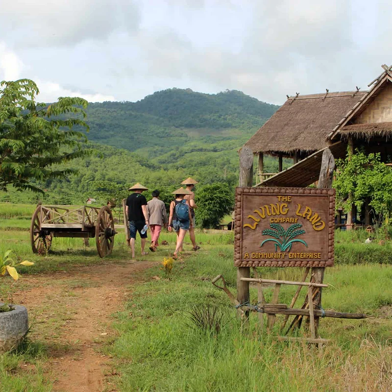 Today, visit the Living Land Rice Farm, a community project promoting sustainable farming practices. Here, you can assist with various tasks, such as planting rice or steering a water buffalo.