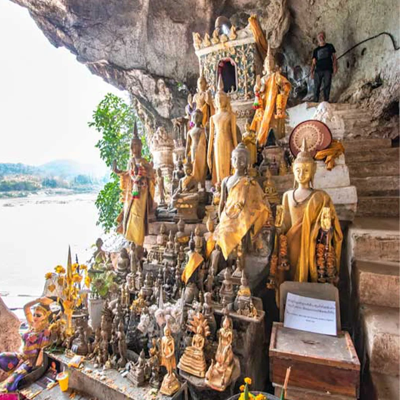 Begin the day by participating in an alms-giving ritual, followed by breakfast at your hotel. Then, embark on a private boat for a 2-hour trip along the Mekong River to Pak Ou Caves, where you will discover numerous gold-lacquered Buddha statues.