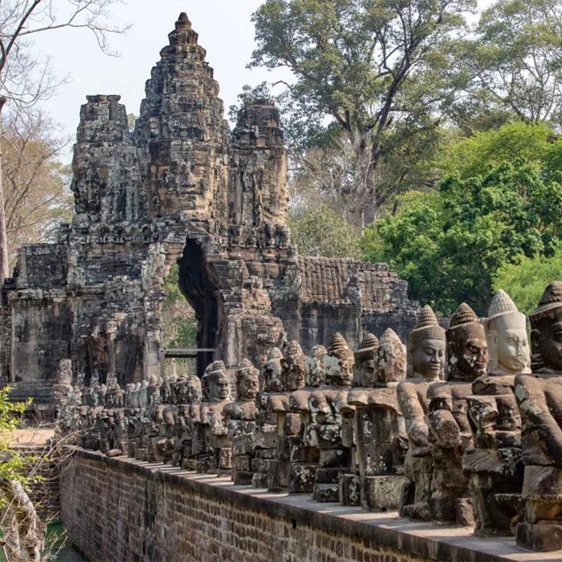 Today, discover the majestic temples of the Khmer Empire, starting with Angkor Thom. Visit the Bayon Temple, famous for its smiling stone faces, followed by the Terrace of the Leper King, the Royal Palace, and Baphuon Temple. In the afternoon, explore Angkor Wat, the world's largest religious monument, and marvel at its intricate stone carvings.
