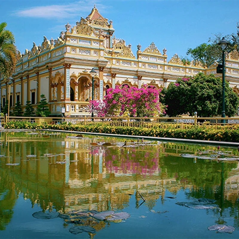 This morning, embark on a journey to the Mekong Delta, beginning with a visit to the Vinh Trang Pagoda, known for its intricate mosaics. Continue with a boat trip along the river to explore stilt houses, fruit plantations, and fishing villages. After lunch, visit the village of An Khanh, renowned for its fruit orchards and coconut sweets. In the evening, fly to Danang and transfer to Hoi An for check-in.