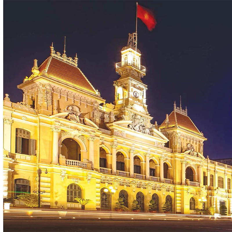 Fly to Ho Chi Minh City, Saigon, the largest Vietnamese city. There are street markets, sidewalk cafes and sleek new bars. This teeming metropolis offers 300 years of timeless traditions and the beauty of an ancient culture. To the west of the city is the huge Chinese neighborhood called Cholon, which means "Big Market." Notre Dame Cathedral, in the heart of Saigon's government quarter, is of neo- Romanesque architecture with two high square tower and iron spires. The Central Post Office is French-style and City Hall, known as "Hotel de Ville," is typical of the French architecture that would be seen in any village in France. Visit the War Remnants Museum, featuring collections of weapons and photographs from the two Indochina wars. Stay overnight in Ho Chi Minh City.