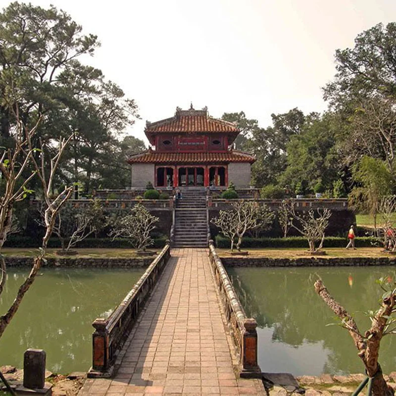 Just outside Hue, visit the Thien Mu Pagoda on the bank of the Perfume River, which was a hotbed of anti-government protest during the early 1960s. Next, visit the complex of the Tomb of Emperor Minh Mang, built in 1840, which is known for its magnificent architecture and elaborate decorations and is considered one of Hue's most beautiful pagodas. After lunch at a local restaurant, visit Tu Duc Tomb, which was built for meditation, reading and theater performances in a tranquil setting of forested hills and lakes. Your final stop is at Khai Dinh, the last monument of the Nguyen dynasty. It has a remarkably long staircase flanked by dragons, ceiling murals and ceramic frescoes. Return to your hotel on the riverbank where your Art Deco inspired rooms are reminiscent of the 1920s and 1950s. Overnight in Hue City.