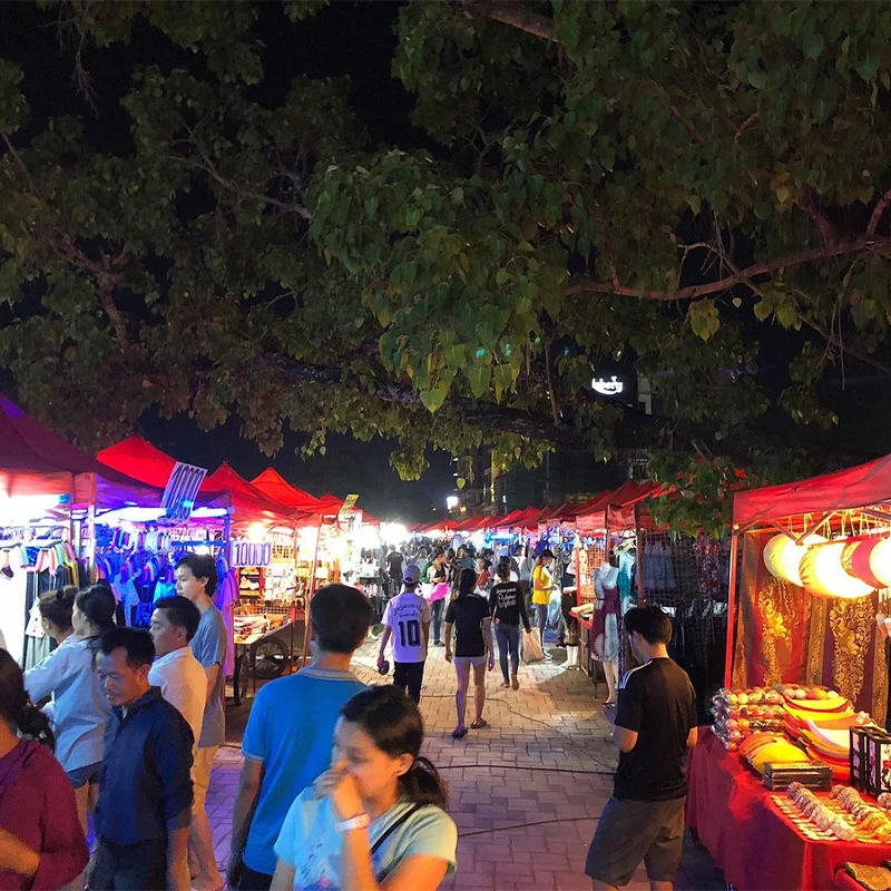 Evening, free on our own to explore the Night Market, where you can find a lovely selection of handmade textiles made by the hill tribe and local people surrounding Luang Prabang.